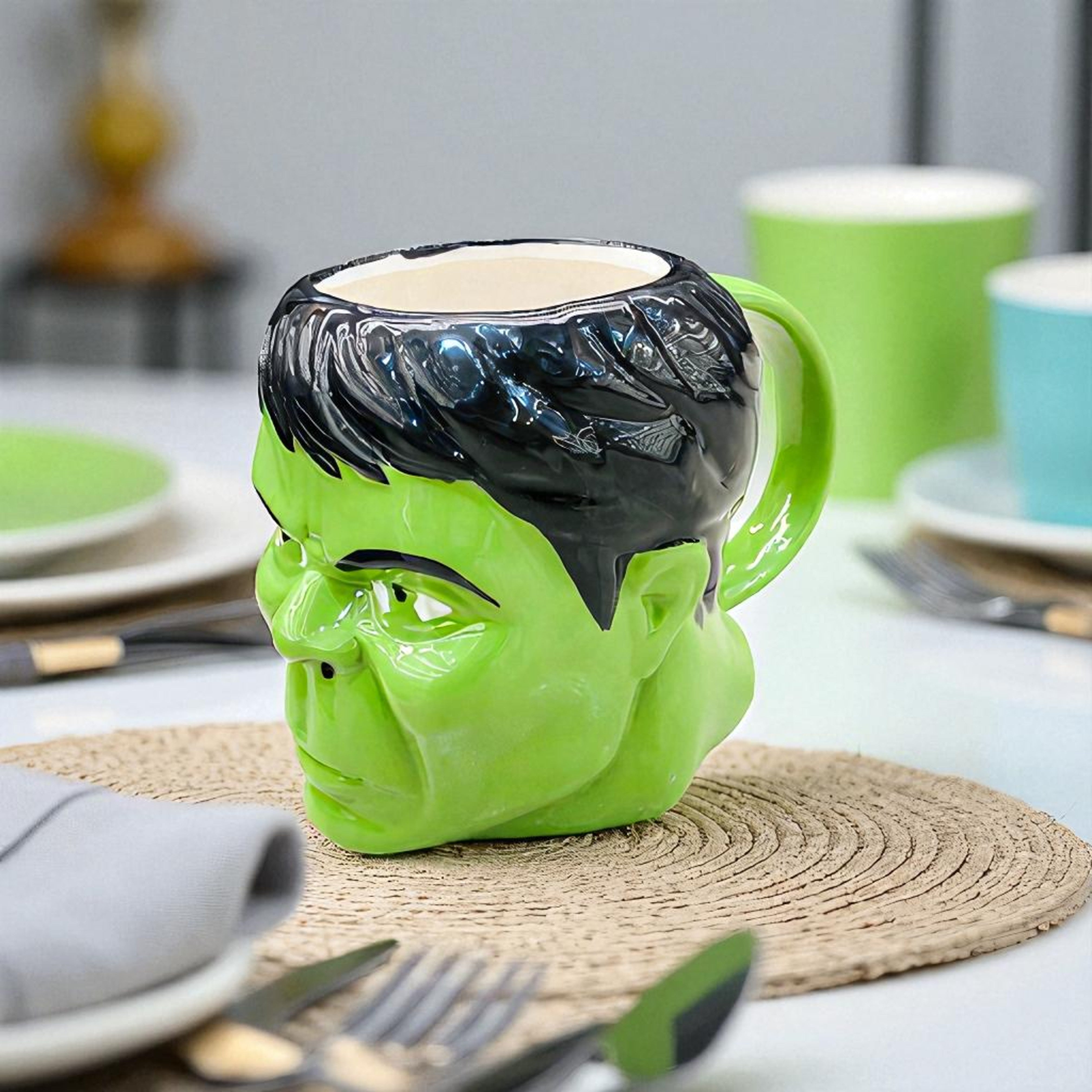 Unleash the power of your morning brew with the Gamma Titan Premium Hulk Head Mug, a bold fusion of heroic strength and fine craftsmanship. Expertly sculpted in high-quality ceramic, this collectible piece captures the Hulk’s iconic intensity with striking detail and a glossy finish. Perfect for fans of legendary superheroes, it’s equally at home holding your favorite beverage or standing proudly as a display piece. Bring a touch of unstoppable energy to your drinkware collection.